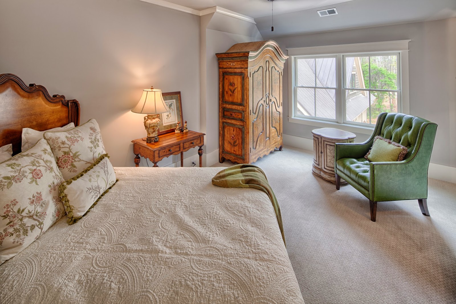 With three additional bedrooms on the upper level and one in the guest suite above the garage, the "Georgetown" is suitable for a large family or a small one that enjoys hosting a number of guests.